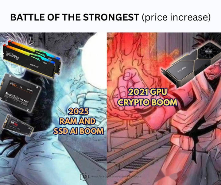 有网友作念了一个梗图,幻思着——如果RAM能像生果一样长出来就好了。