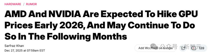 外媒Board Channels最新说法,AMD与英伟达将从2026岁首,开动上调GPU供货价钱。
