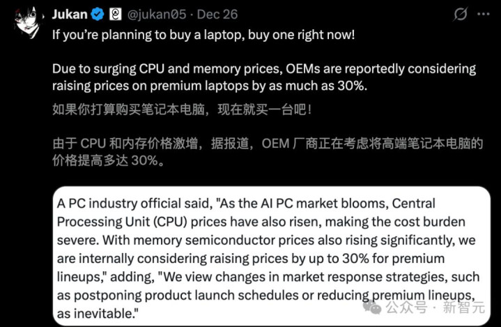 网友能劝尽劝,「如果挑升向购买一台条记本,目下马上下手吧」。