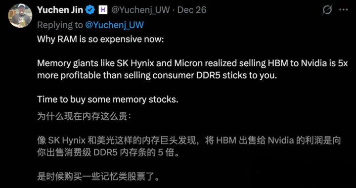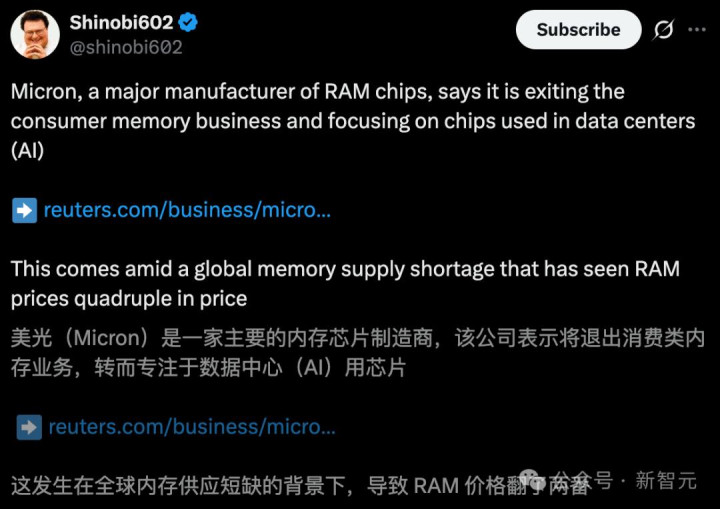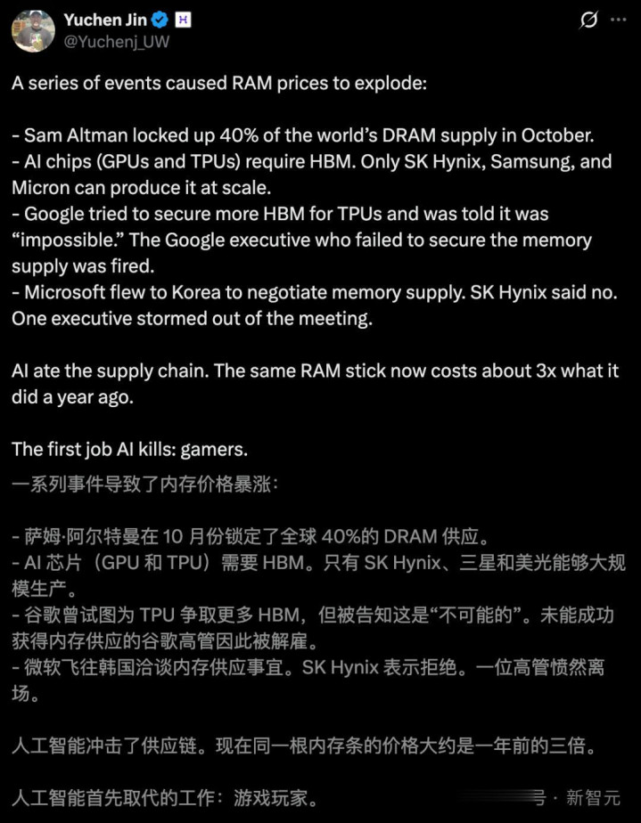 内存不够用,最径直的成果是:全宇宙每个东谈主,齐会被动为AI买单。