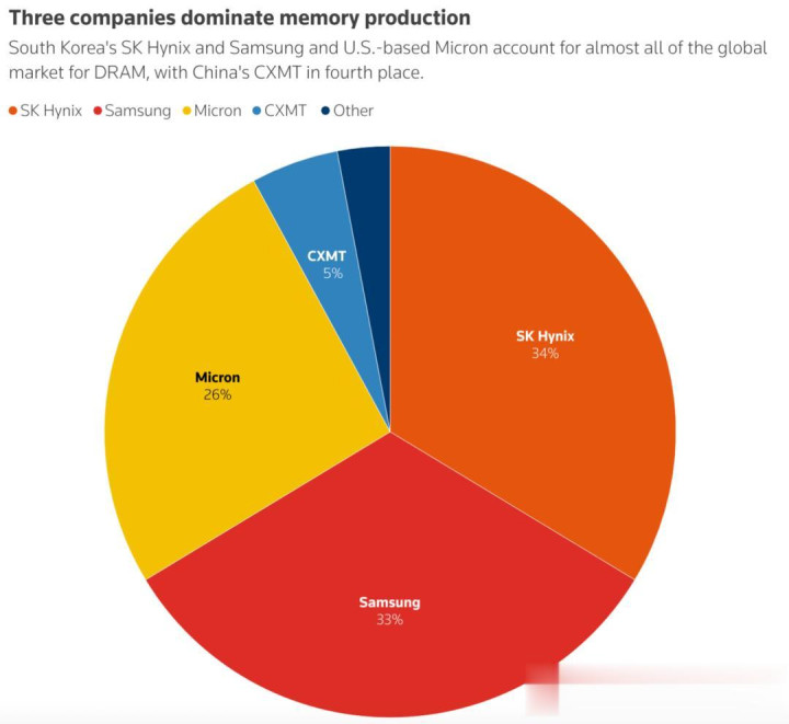 这一采购径直锁定了,每月高达90万片DRAM晶圆供应,相等于DRAM月度产量的40%。